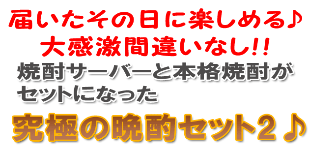 | 届いてすぐに楽しめる焼酎サーバーセット♪いつもとは違った晩酌をお楽しみください☆ |
