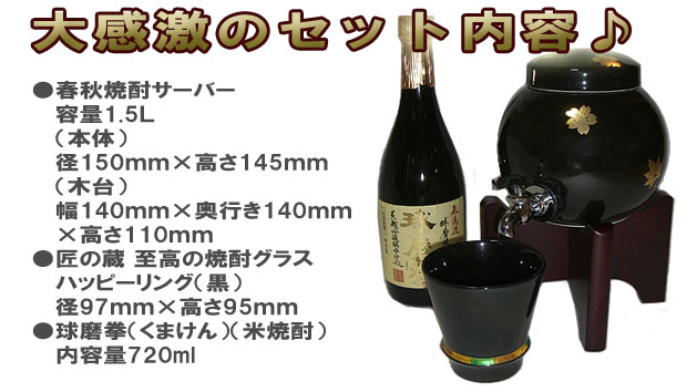 有田焼 春秋焼酎サーバーに当店一番人気の焼酎グラスと本格米焼酎がついてなんとこのお値段!