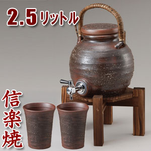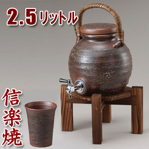 | 信楽焼 2.5L 手付き焼酎サーバー(木台付)お得セット |