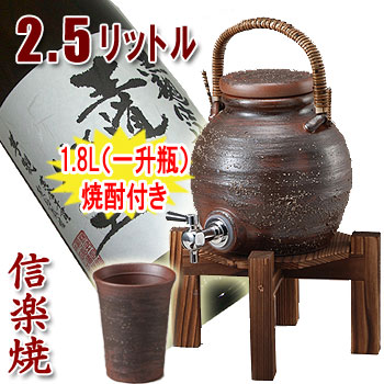 | 信楽焼 2.5L 手付き焼酎サーバー(木台付)超得セット |