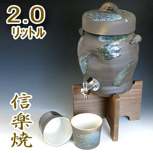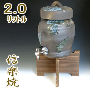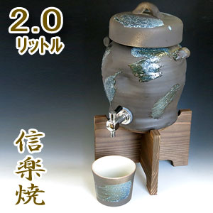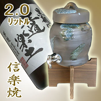 | 本格芋焼酎(王道楽土)1.8L+信楽焼 2.0L(一升用)焼酎サーバー青刷毛目 (木台付) |