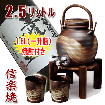 本格芋焼酎(王道楽土)1.8L+信楽焼 2.5L(一升用)焼酎サーバー