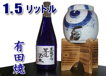 | 有田焼 焼酎サーバー 刷毛渦 1.5L(木台付)+本格 芋焼酎(王道楽土) |