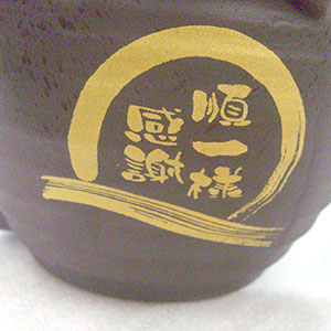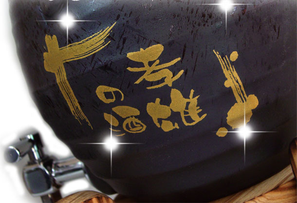 黒い焼酎サーバーに金の文字入れを施しました。高級感満点です